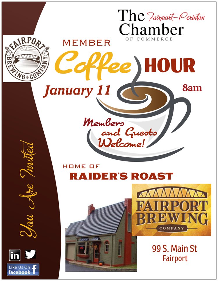You are invited to a coffee hour at Fairport Brewing Company. Drop in to discuss what is going on at your business... and what the Chamber can do for you! The coffee is ready! We need your input!